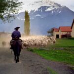 Caminata hacia los corrales para presenciar el ordeñe y arrear las ovejas hacia los potreros, antes de que el grupo se separe entre los que optaron por la caminata o por la cabalgata de duración de 45 minutos.