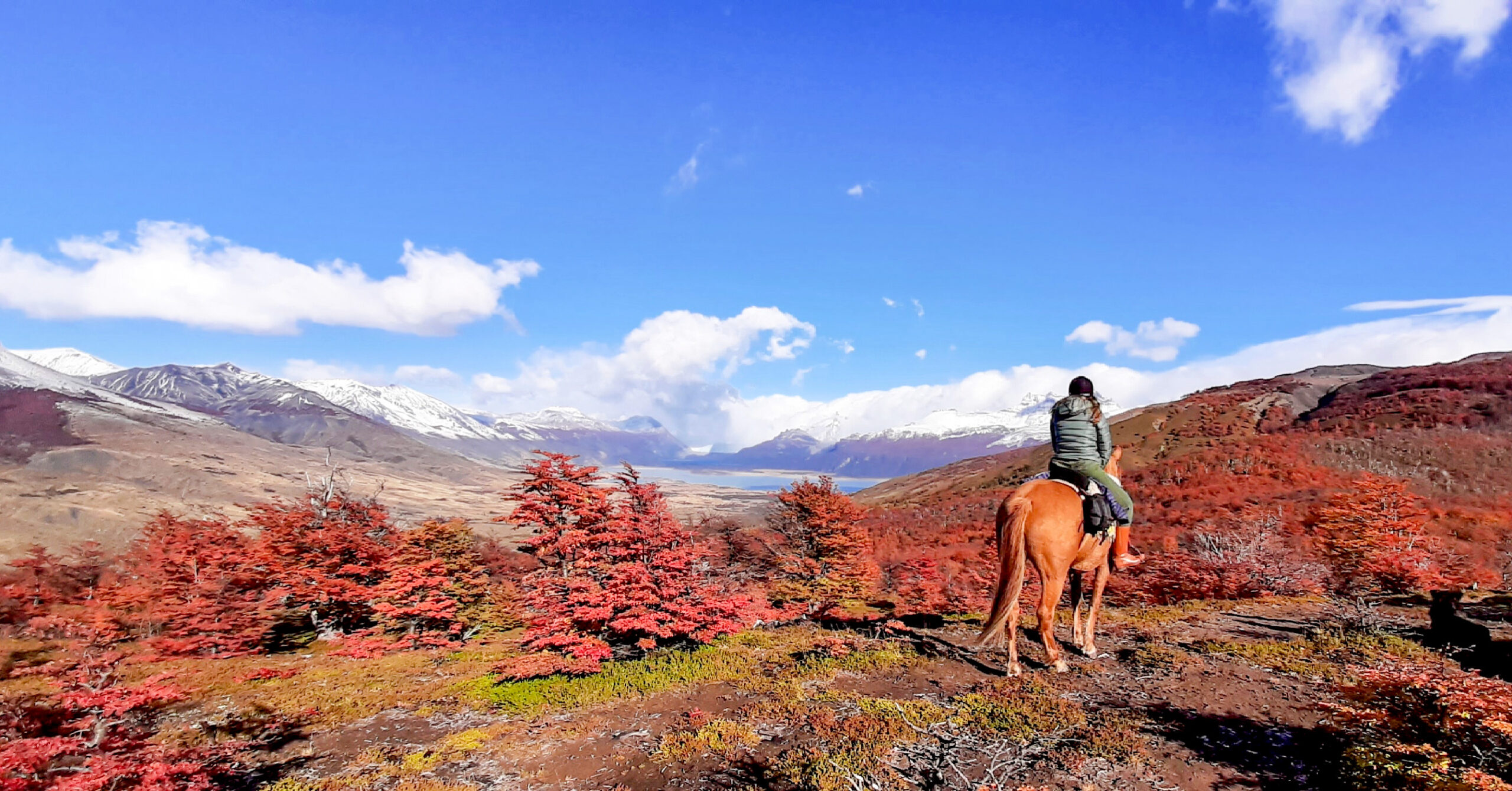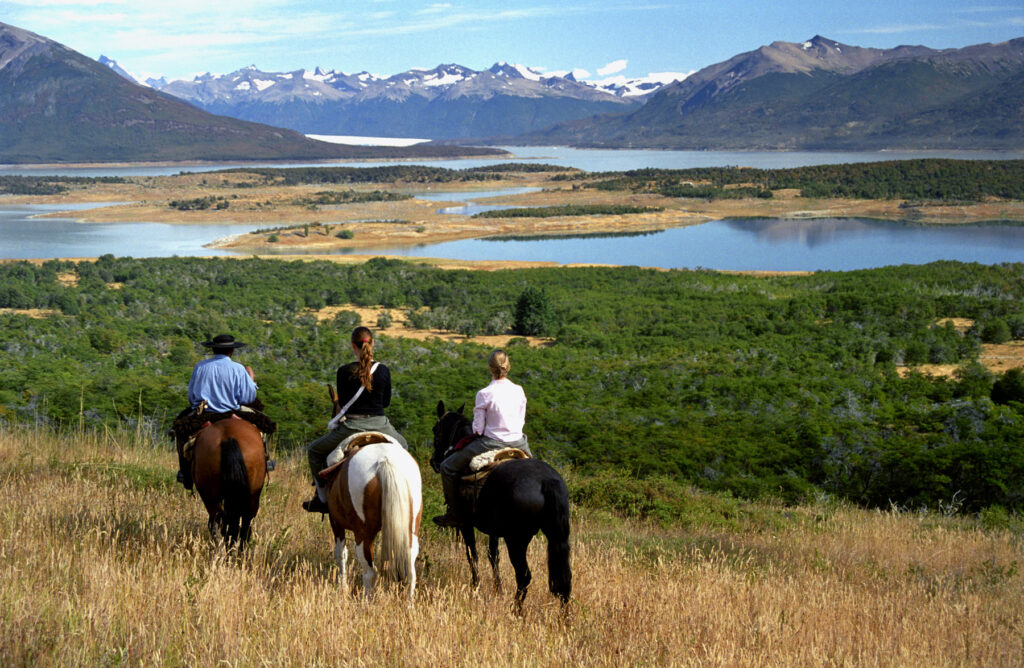 La cabalgata continúa luego en dirección sur mientras se contempla un escenario imponente: el Lago Argentino el majestuoso cerro Cervantes con sus nieves eternas, el Cordón Perito Moreno y el Cordón Adriana. La senda atraviesa bosques de ñires y lengas. Es probable encontrar ganado Hereford pastando y caballos en descanso. Durante el recorrido se puede avistar fauna silvestre: cóndores, liebres, zorros, carpinteros, entre otros.